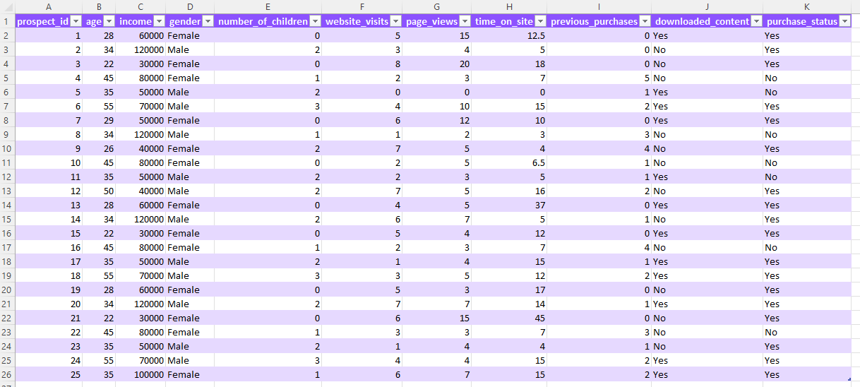 Code Your Target Variable: Make sure your binary outcome is coded correctly. For example, "0" could mean "did not purchase" and "1" could mean "made a purchase."